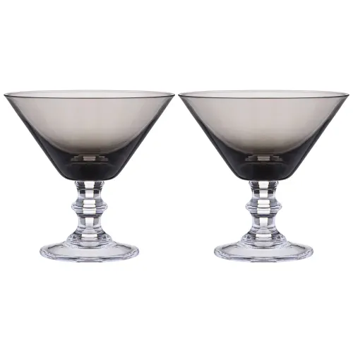 Набор из двух бокалов для мартини Mirage Grey предназначен для подачи коктейлей. Изделия бренда Lefard выполнены в дымчатом оттенке, что обеспечивает универсальность для различных случаев.