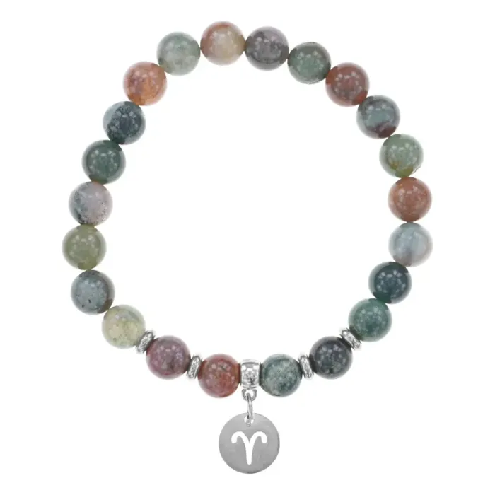 Стрейч-браслет для ношения с символом знака зодиака Овен, изготовленный из натуральной яшмы.