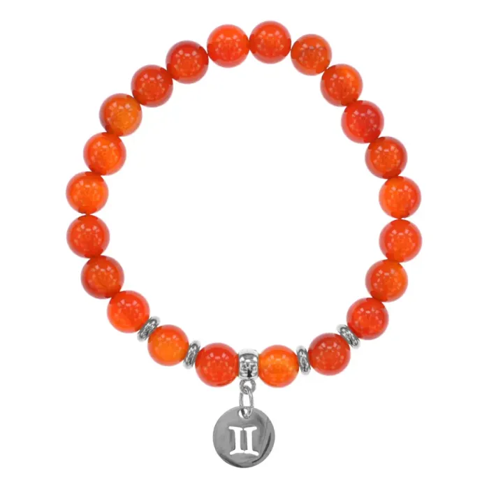 Стрейч-браслет с символом знака зодиака Близнецы, изготовленный из бусин натурального сердолика.
