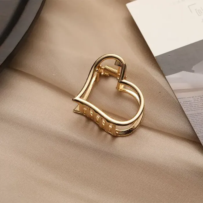 Металлический краб для волос в форме сердца с покрытием под золото.