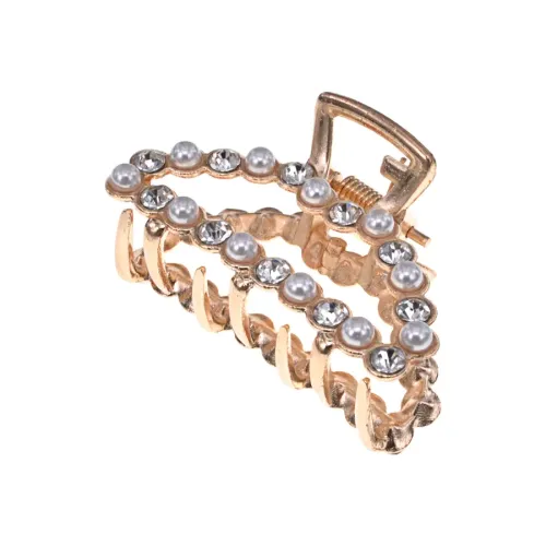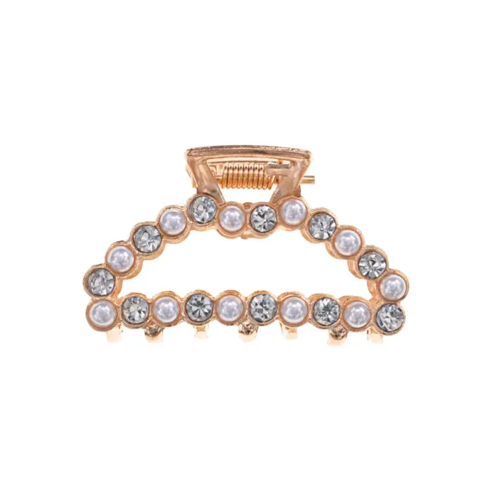 Аксессуар для волос из металла с покрытием под золото, декорированный искусственным жемчугом и стразами.