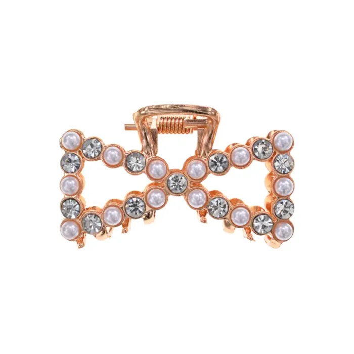 Металлический аксессуар для волос с покрытием под золото, декорированный искусственным жемчугом и стразами.