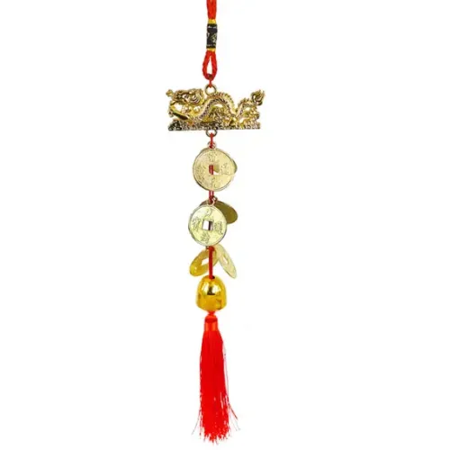 Подвеска Фэн-Шуй Дракон с монетами, 30см, металл Z191-11