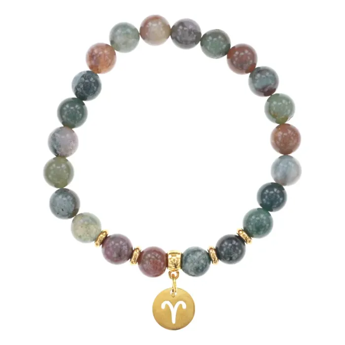 Стрейч-браслет для ношения с символом знака зодиака Овен, изготовленный из натуральной яшмы.