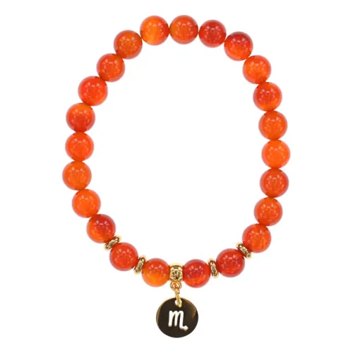 Стрейч-браслет с символом знака зодиака Скорпион, выполненный из натурального сердолика.