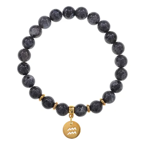 Браслет Знаки Зодиака - Водолей с натуральным Обсидианом 8мм