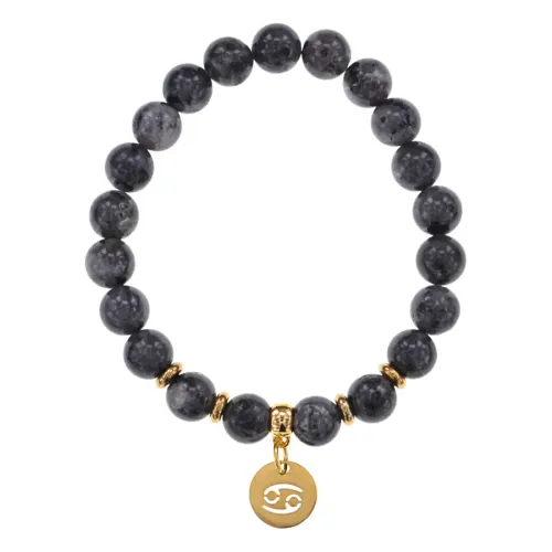 Стрейч-браслет с символом знака зодиака Рак, выполненный из натурального камня лабрадор.