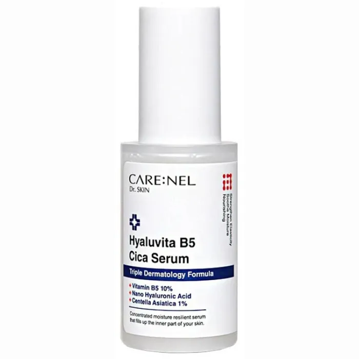Сыворотка для лица Hyaluvita B5 Cica Serum от Care:Nel разработана для интенсивного ухода за кожей, обеспечивая её питание и увлажнение. Формула продукта включает 10% витамина B5 (пантенола), который способствует восстановлению и повышению эластичности кожи. Гиалуроновая кислота в составе представлена в восьми формах, что позволяет глубоко увлажнять кожу и поддерживать её гладкость. Экстракт центеллы азиатской обеспечивает успокаивающее действие, помогая снять раздражение и освежить кожу.