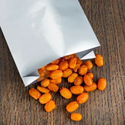 Металлизированный пакет с центральным швом предназначен для упаковки и хранения пищевых продуктов, таких как сахар, сухое молоко или кофе. Конструкция с центральным швом обеспечивает повышенную прочность и практичность при использовании в условиях производства или торговли.