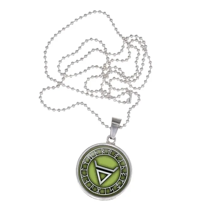 Сувенирный кулон-амулет из бижутерного сплава с покрытием под серебро. Изображение расположено под выпуклой стеклянной линзой.