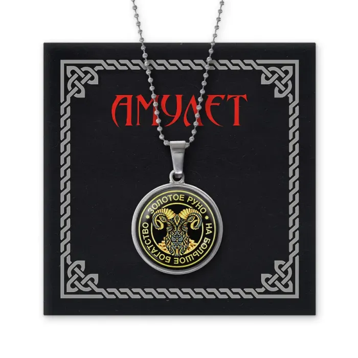 Сувенирный кулон-амулет из бижутерного сплава с покрытием под серебро. Изображение расположено под выпуклой стеклянной линзой.