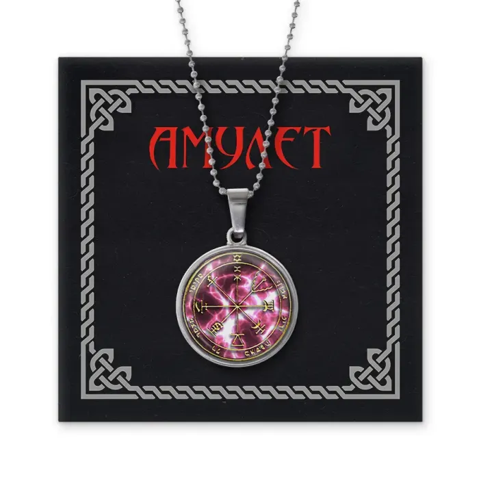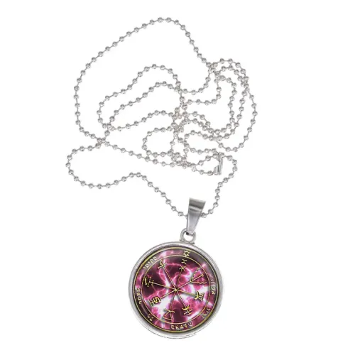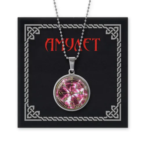 Сувенирный кулон-амулет из бижутерного сплава с покрытием под серебро. Изображение расположено под выпуклой стеклянной линзой.