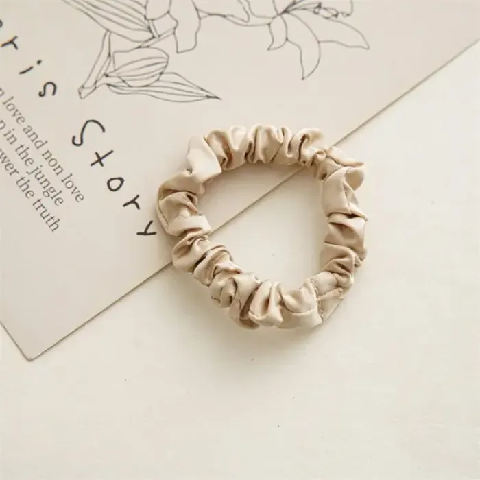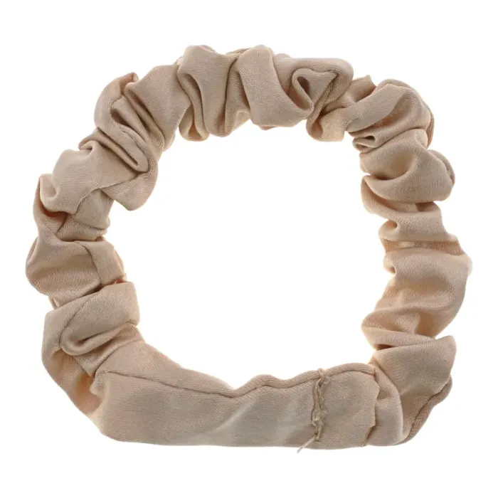 Резинка для волос из атласной ткани, диаметром 7,5 см, бежевого цвета.