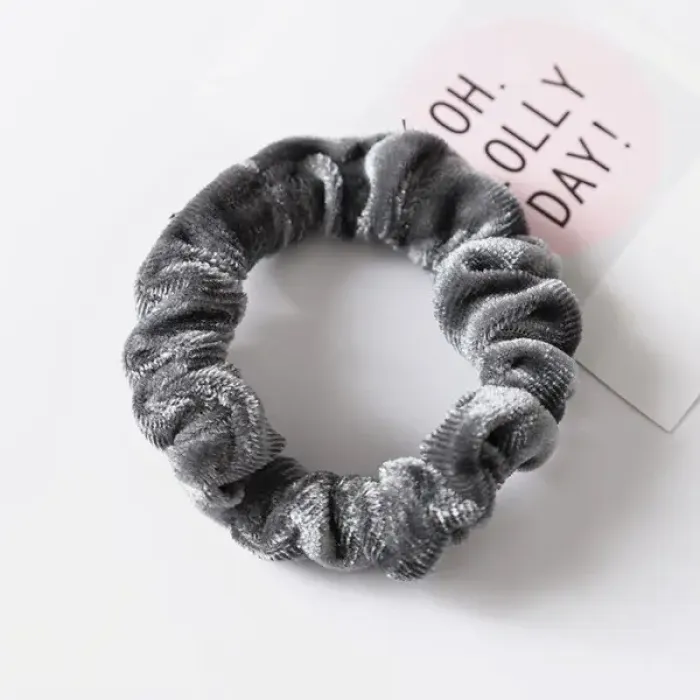 Резинка для волос из искусственного бархата серого цвета.