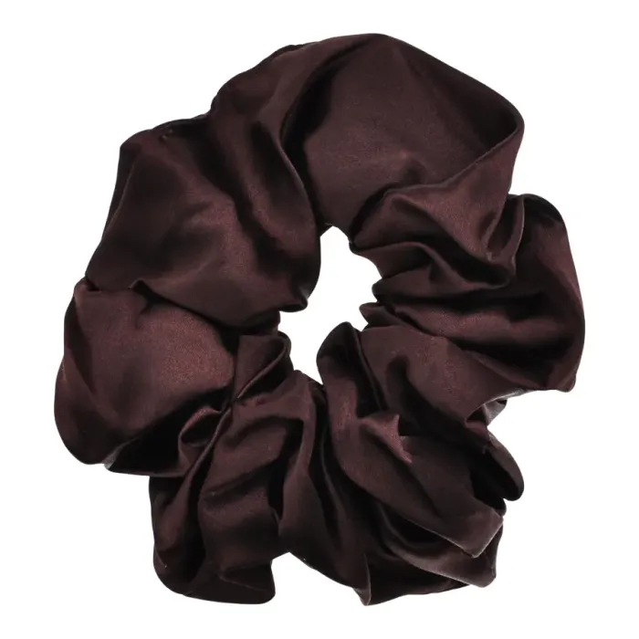 Резинка для волос из атласной ткани, диаметром 12,5 см, в коричневом цвете.