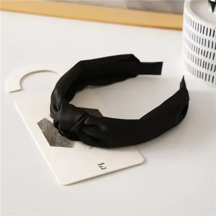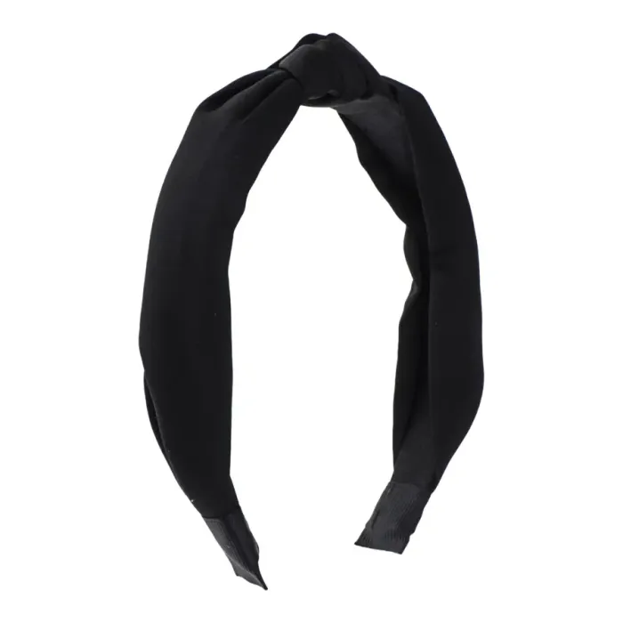 Ободок для волос из пластика, обитого атласной тканью, черного цвета.
