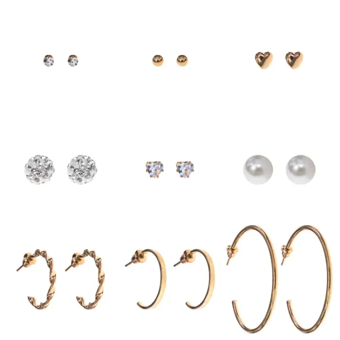 Набор из девяти пар серег, цвет золотой SEN012-04