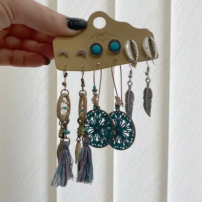 Размеры и комплектация: Размеры каждой пары варьируются от 7,5х5х10 мм до 80х15х10 мм. В наборе шесть пар серёг.