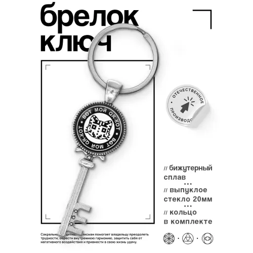 Размеры и комплектация: Размер 60х20 мм (без кольца), диаметр изображения 18 мм. В комплекте кольцо для ключей. Упаковка — прозрачный пакет.