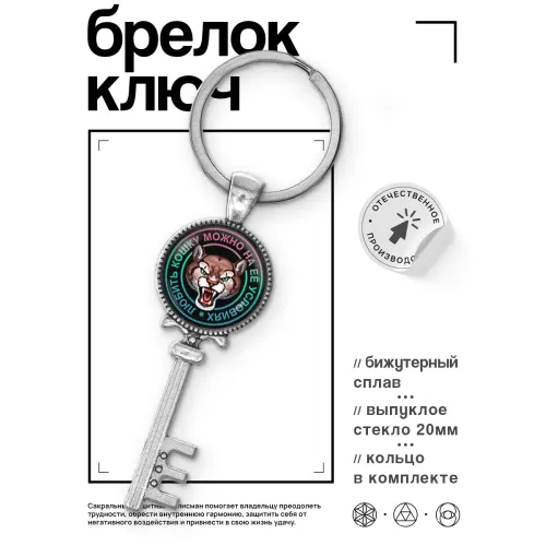 Размеры и комплектация: Размер брелка 60х20 мм (без кольца), диаметр изображения 18 мм. В комплекте кольцо для ключей. Упаковка — прозрачный пакет.