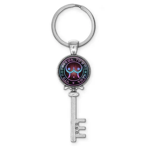 Брелок для ключей из бижутерного сплава с изображением под стеклянной линзой.