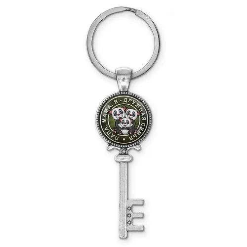 Брелок-ключница с изображением и надписью «Папа, мама, я - дружная семья». Изготовлен из бижутерного сплава.