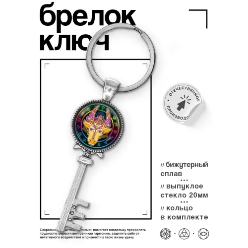 Размеры и комплектация: Размер 60х20 мм (без кольца), диаметр изображения 18 мм. В комплекте кольцо для ключей. Упаковка: прозрачный пакет.