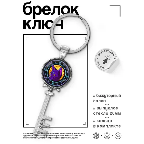 Размеры и комплектация: Размер брелока: 60х20 мм (без кольца), диаметр изображения: 18 мм. В комплекте кольцо для ключей. Упаковка — прозрачный пакет.