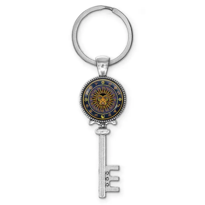 Брелок для ключей из бижутерного сплава с покрытием под серебро и изображением под стеклянной линзой.