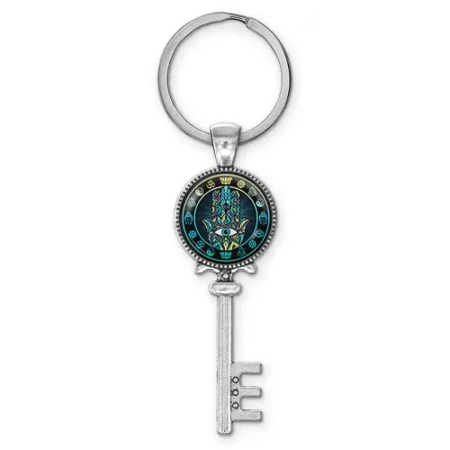 Брелок для ключей из бижутерного сплава в виде ключа с символом Хамса.