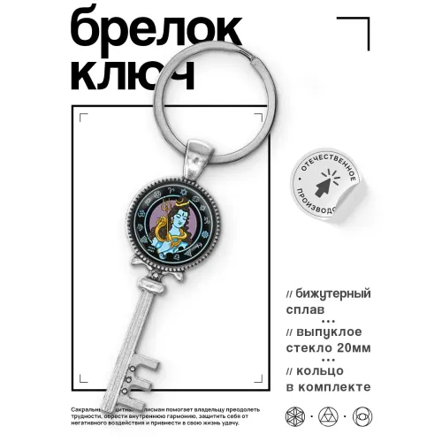 Размеры и комплектация: Размер 60х20 мм (без кольца), диаметр изображения 18 мм. В комплекте кольцо для ключей. Упаковка — прозрачный пакет.