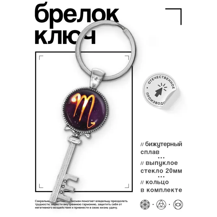 Брелок для ключей с изображением знака зодиака Скорпион, изготовленный из бижутерного сплава.