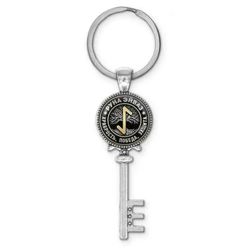 Брелок для ключей из бижутерного сплава с изображением руны Эйваз.