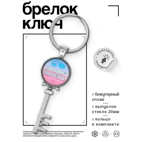 Размеры и комплектация: Размер брелка 60х20 мм (без кольца), диаметр изображения 18 мм. В комплекте кольцо для ключей. Упаковка — прозрачный пакет.