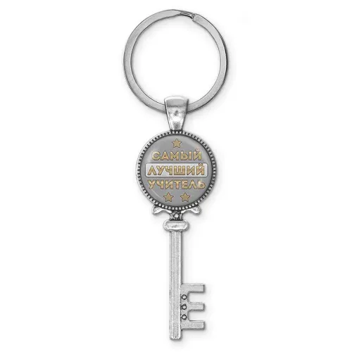 Брелок для ключей «Самый лучший учитель» из бижутерного сплава с изображением под стеклянной линзой.