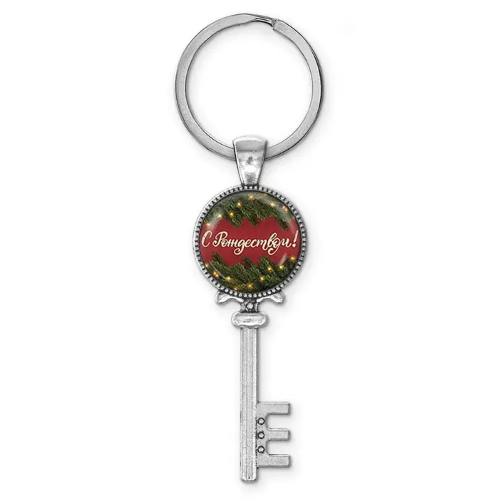 Брелок для ключей в форме ключа с рождественским изображением. Изготовлен из бижутерного сплава с покрытием под серебро.