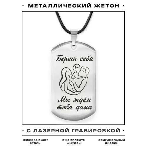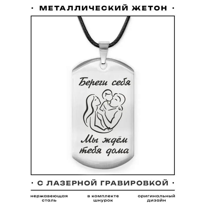 Размеры и комплектация: Размер жетона 50х28 мм. В комплект входит шнурок с застёжкой. Упаковка — прозрачный пакет.