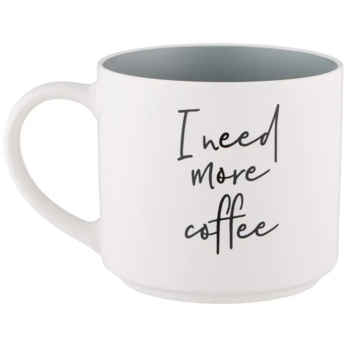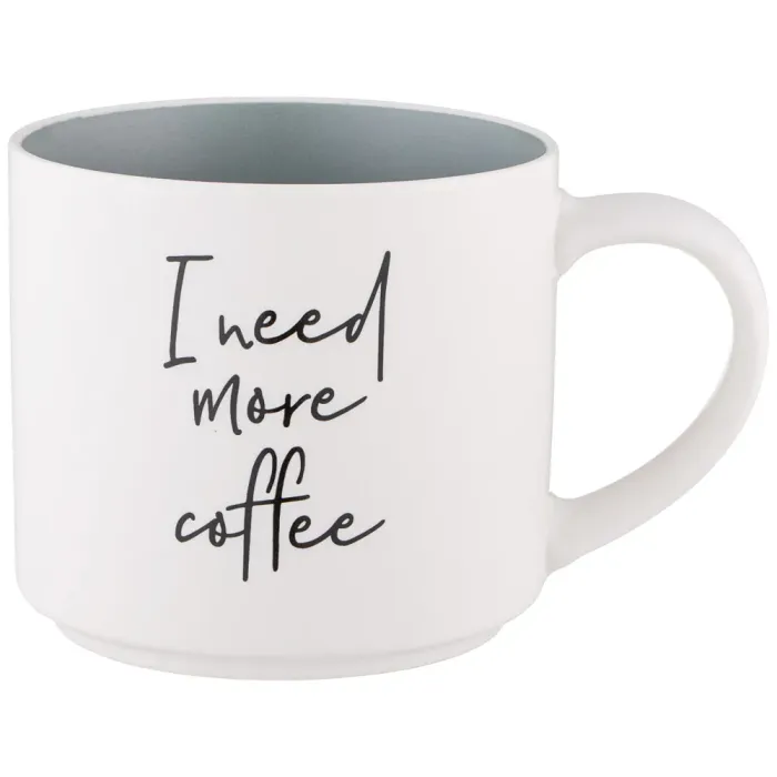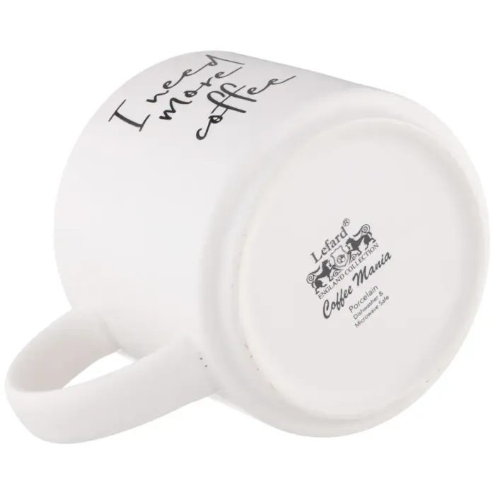 Кружка I Need More Coffee объёмом 470 мл от бренда Lefard предназначена для подачи горячих напитков. Изделие относится к коллекции Coffee Mania и изготовлено из фарфора, украшено текстовым принтом.