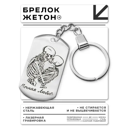 Размеры и комплектация: Размер жетона 50х28 мм. В комплекте кольцо для ключей. Упаковка — прозрачный пакет.