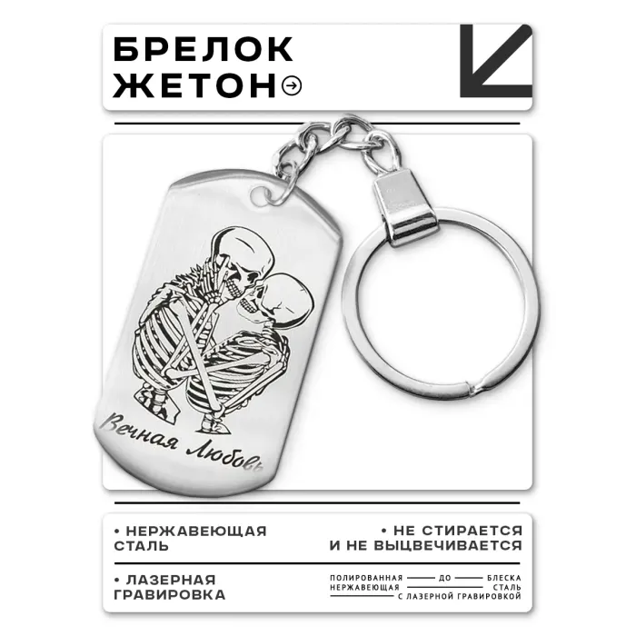 Брелок-жетон из нержавеющей стали с лазерной гравировкой на одной стороне.