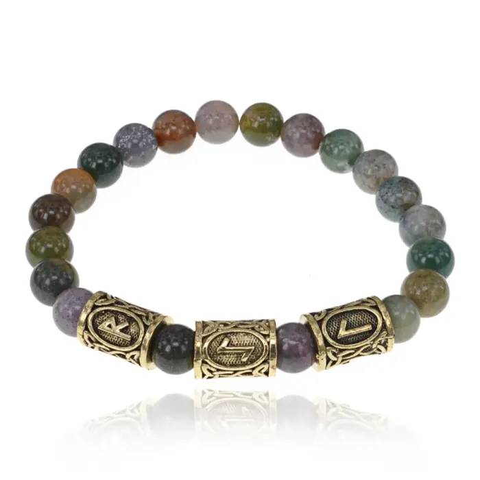 Браслет с рунами под золото Руны Дороги (защита в пути) с нат. камнем Яшма 8мм BSRZ029
