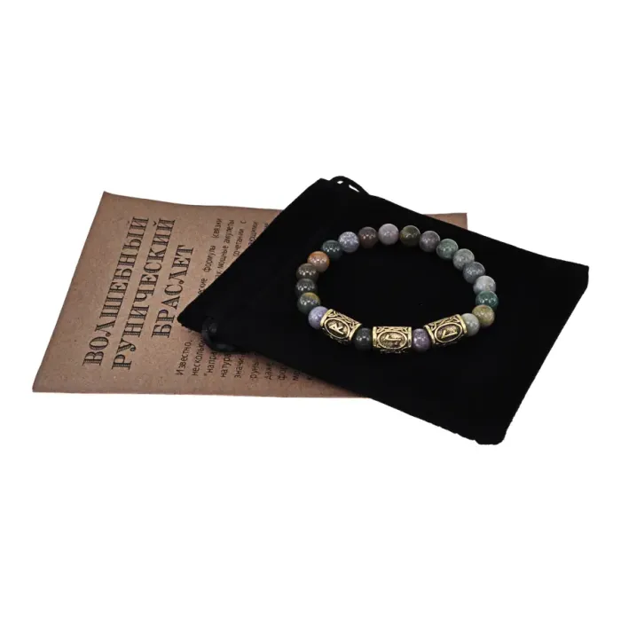 Размеры и комплектация: Внутренний диаметр браслета примерно 5,5 см. В комплекте черный бархатный мешочек и буклет с описанием значений рун и камней.