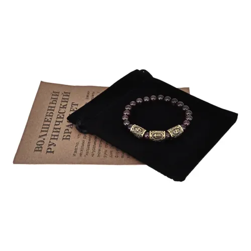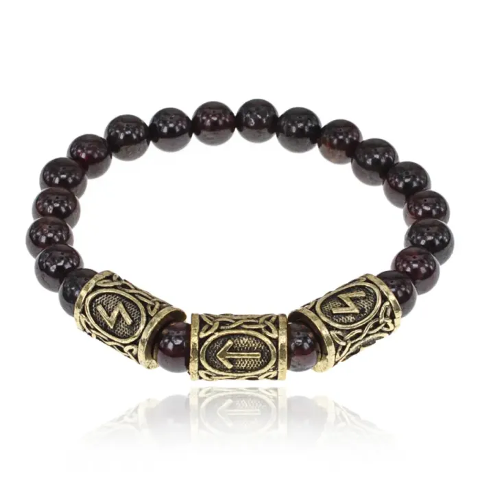 Браслет с рунами под золото Победа над злом, с нат. камнем Гранат 8мм BSRZ031