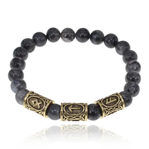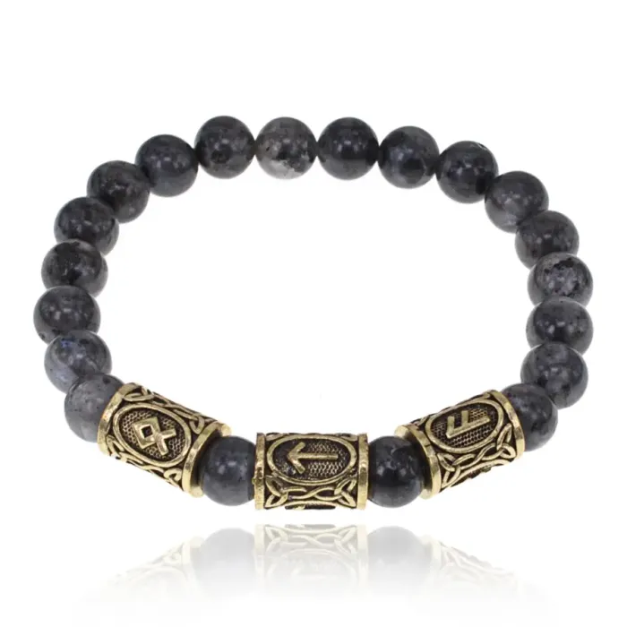 Браслет с рунами под золото Победа, Достижение цели, с нат. камнем Лабрадор 8мм BSRZ037
