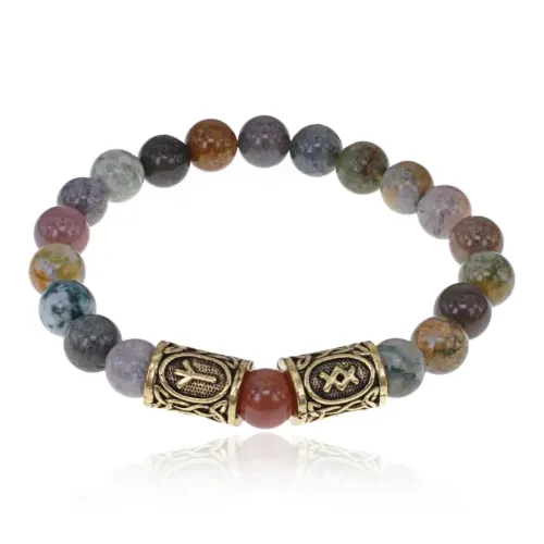 Браслет с рунами под золото Процветание и защита, с нат. камнем Яшма 8мм BSRZ044