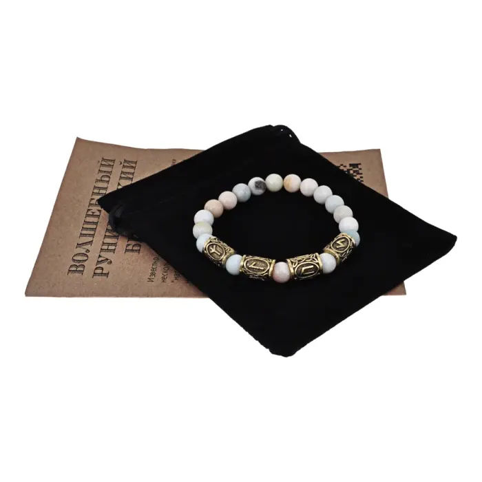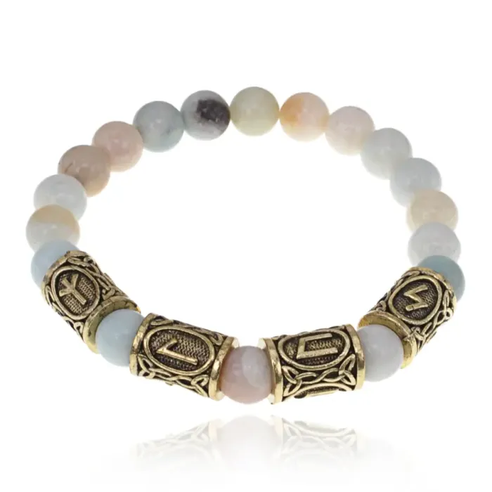 Браслет с рунами под золото Уверенность в себе, с нат. камнем Амазонит 8мм BSRZ047