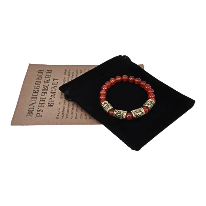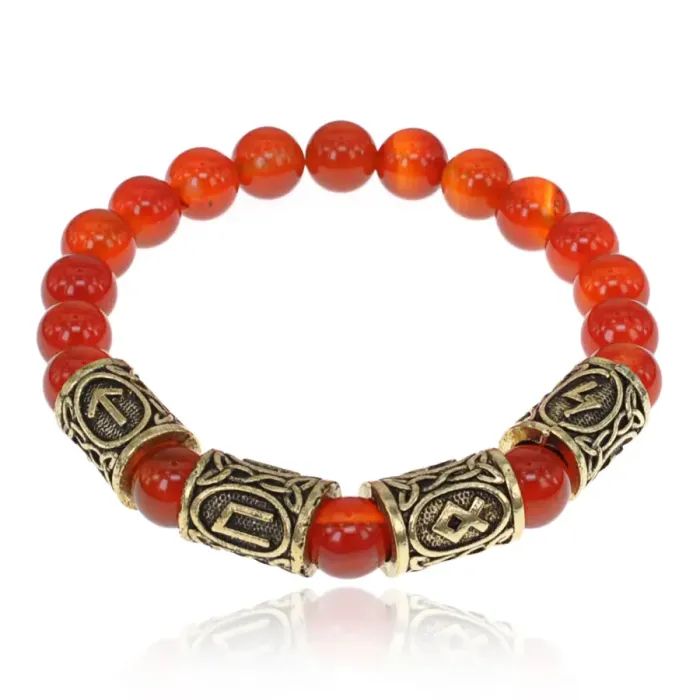 Браслет с рунами под золото Победа над конкурентами, с нат. камнем Сердолик 8мм BSRZ053