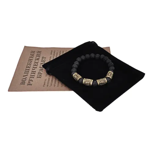 Браслет-амулет с рунической формулой. Изготовлен из натурального камня лава и бижутерного сплава с покрытием под золото.