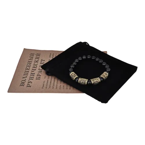Размеры и комплектация: Стрейч-браслет с внутренним диаметром примерно 5.5 см. В комплекте чёрный бархатный мешочек и буклет с описанием значений рун.