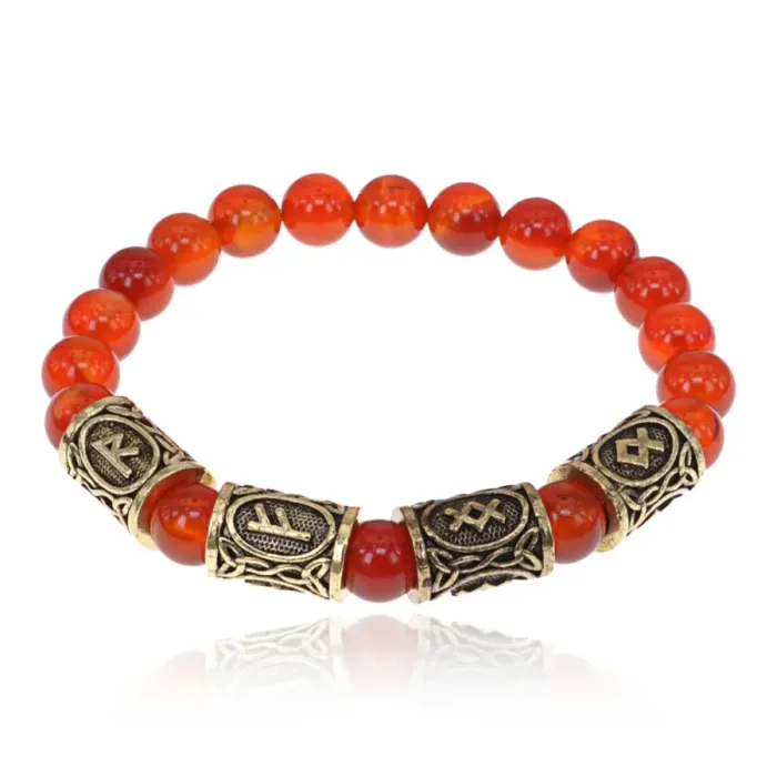 Браслет с рунами под золото Успешное вложение денег, с нат. камнем Сердолик 8мм BSRZ073